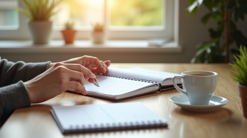 After a long day, Rosa ensures a restful night through a series of calming activities: dimming the lights, reading a book, and jotting down thoughts in a journal. This routine signals her body it's time to unwind and prepare for sleep.